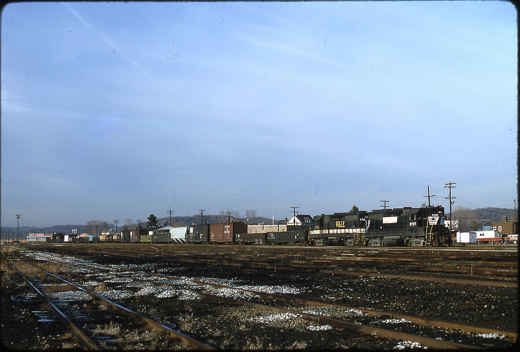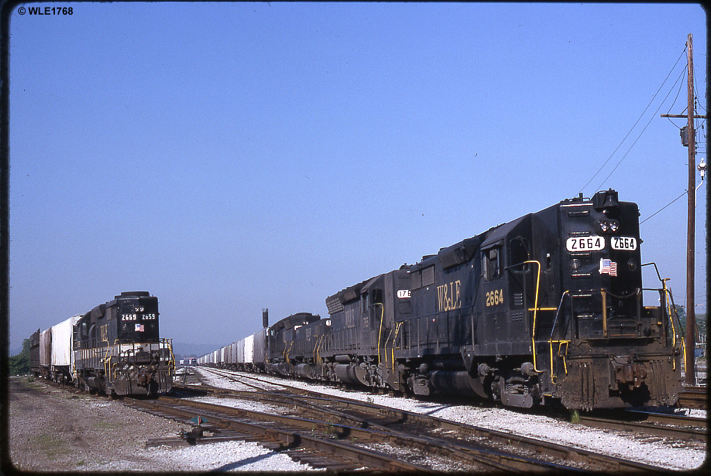 The 1st W&LE RB-1, with 50 cars, prepares to depart Rook, Pa. |